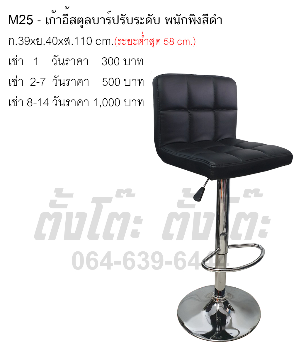 เช่าเก้าอี้สตูลบาร์ปรับระดับ พนักพิง สีดำ